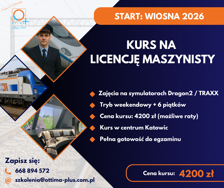 TRWA REKRUTACJA! Kurs na Licencję Maszynisty w OTTIMA plus! Początek kursu : kwiecień/maj 2026 Kurs na licencję maszynisty